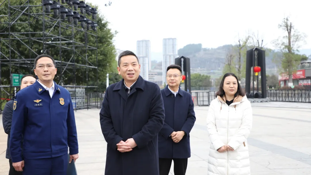 在通川区2025年大型迎春无人机灯光秀活动筹备现场,李祝荣实地了解无人机灯光秀活动场地布置、安全保障等工作。他强调,无人机灯光秀是展示通川良好形象,进一步提升通川知名度、美誉度的一场盛会。公安、应急、消防等部门要密切配合,完善应急预案、严格落实安全责任、加强安全隐患排查,做好现场管控、人流疏导等工作,确保各项安全防范措施落实到位。各责任单位要精心组织,丰富活动内容,提升活动品质,为市民群众呈现一场精彩绝伦的无人机灯光秀。