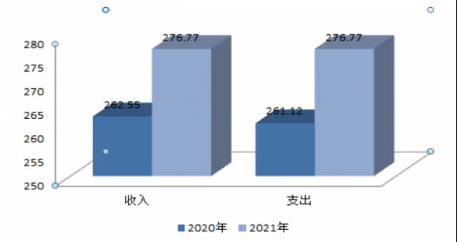 2021年度财政拨款收入总计276.77万元,财政拨款支出总计276.77万元。与2020年相比,财政拨款收入总计增加14.22万元,上升5.42%,是由于项目收入较2020年增加20.67万元;支出总计增加15.65万元,上升6%,是由于项目支出较2020年增加。
