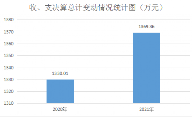 2021年度收、支总计1369.36万元。与2020年相比,收、支总计各增加38.35万元,增长2.88%。主要变动原因是政府加大了对教育的投入和教师待遇的提高。