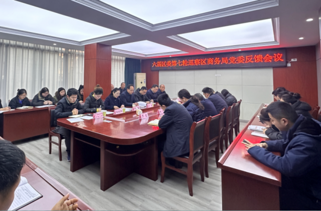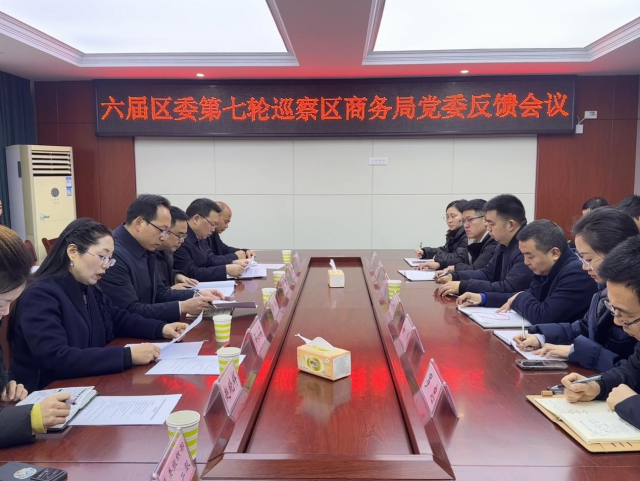 按照区委巡察工作领导小组的统一安排,2025年1月20日上午,六届区委第七轮巡察区商务局党委反馈会议召开。区商务局党委书记、局长何曙光主持会议,区政府副区长王栋,区委巡察办副主任张韬,区委第一巡察组组长邵小莉、副组长赵晓辉及巡察专员阮琴,区纪委监委第四纪检监察室主任李代勇、区委组织部干部二股干部徐达,区纪委监委派驻区商务局纪检组组长熊峰出席会议;区商务局全体干部职工共计30余人参加会议。